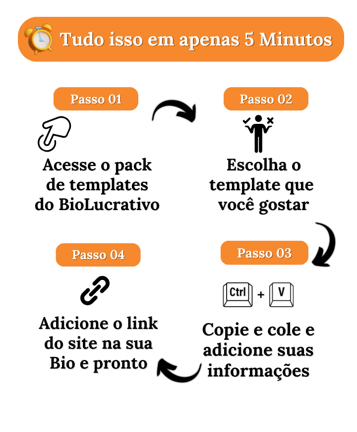 Em menos de 5 minutos você já terá sua nova bio no ar, com visual profissional e pronta para atrair mais cliques e vendas.